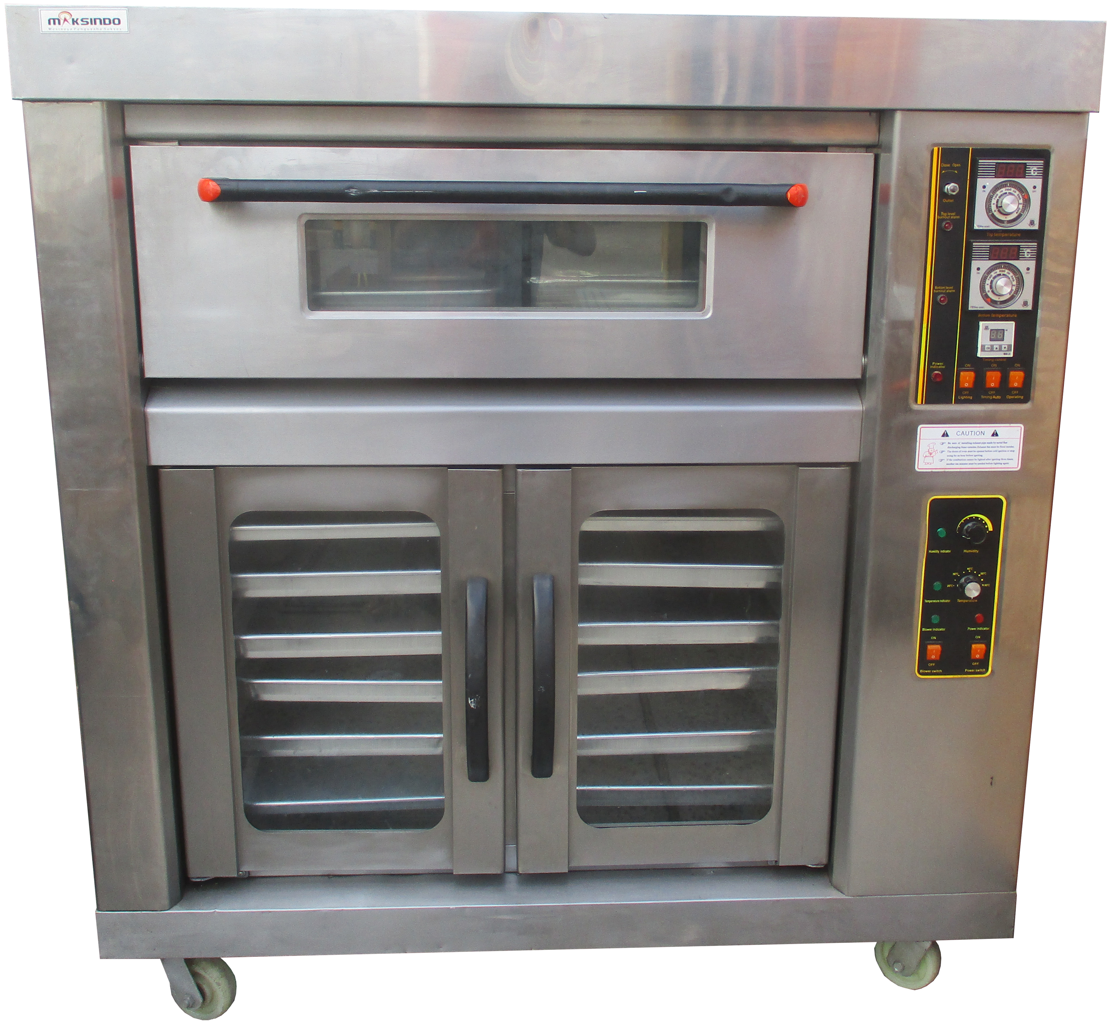 Toko Mesin Maksindo menjual mesin combi deck oven yang dilengkapi dengan proofer. Kombinasi deck oven dengan proofer lebih praktis dan menghemat tempat. Oven dioperasikan menggunakan gas LPG sedangkan proofer menggunakan tenaga listrik.