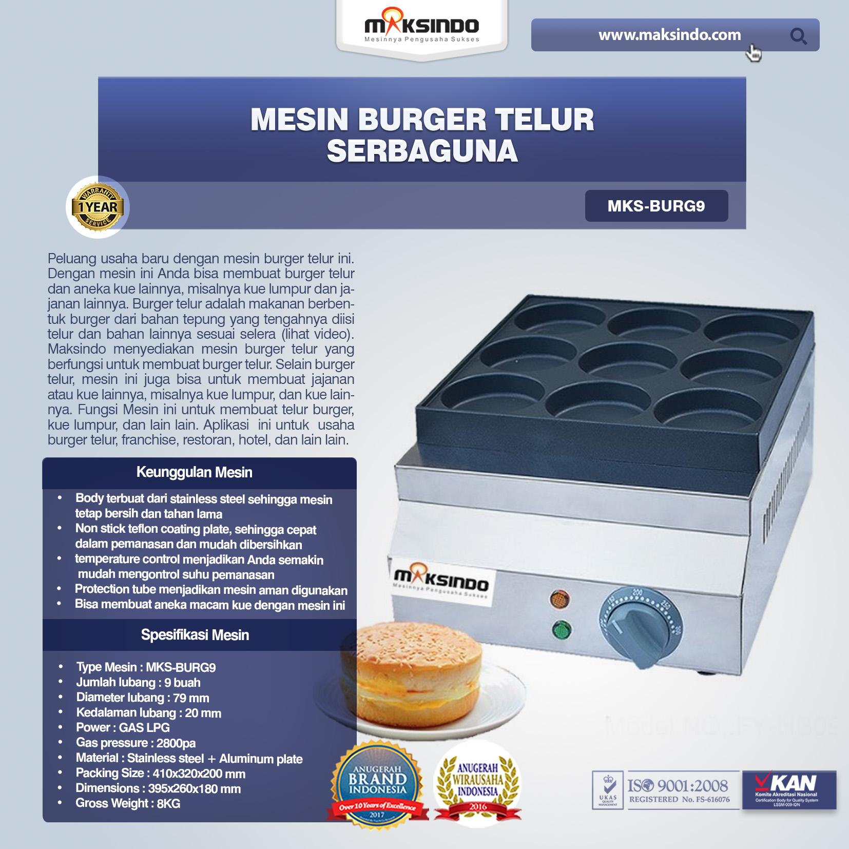 Spesifikasi Mesin Telur Burger Serbaguna Maksindo