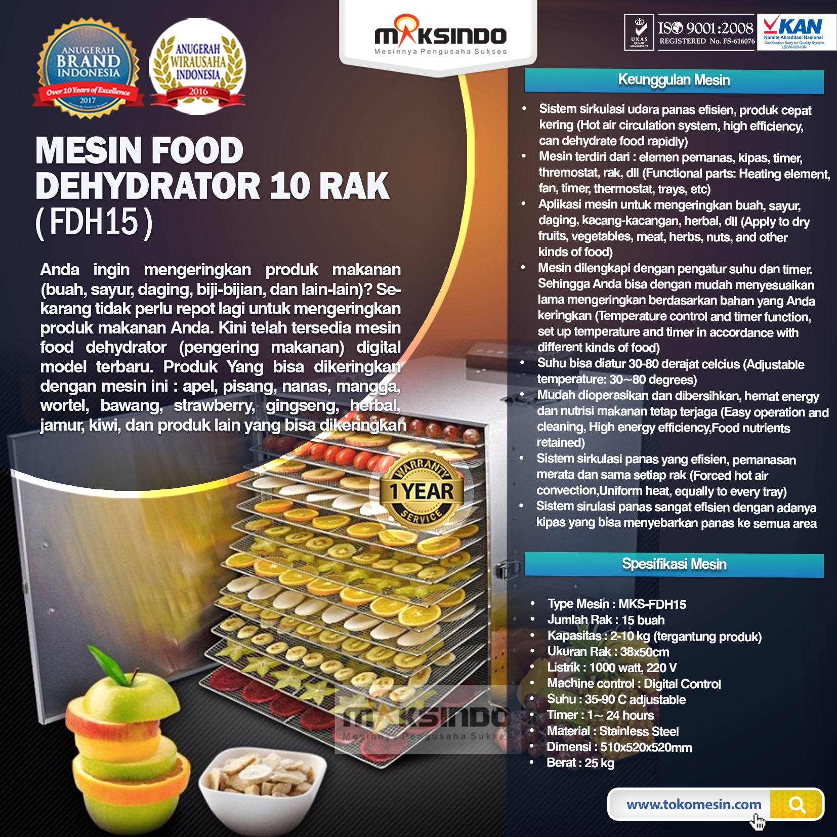 Spesifikasi Mesin Food Dehydrator ini