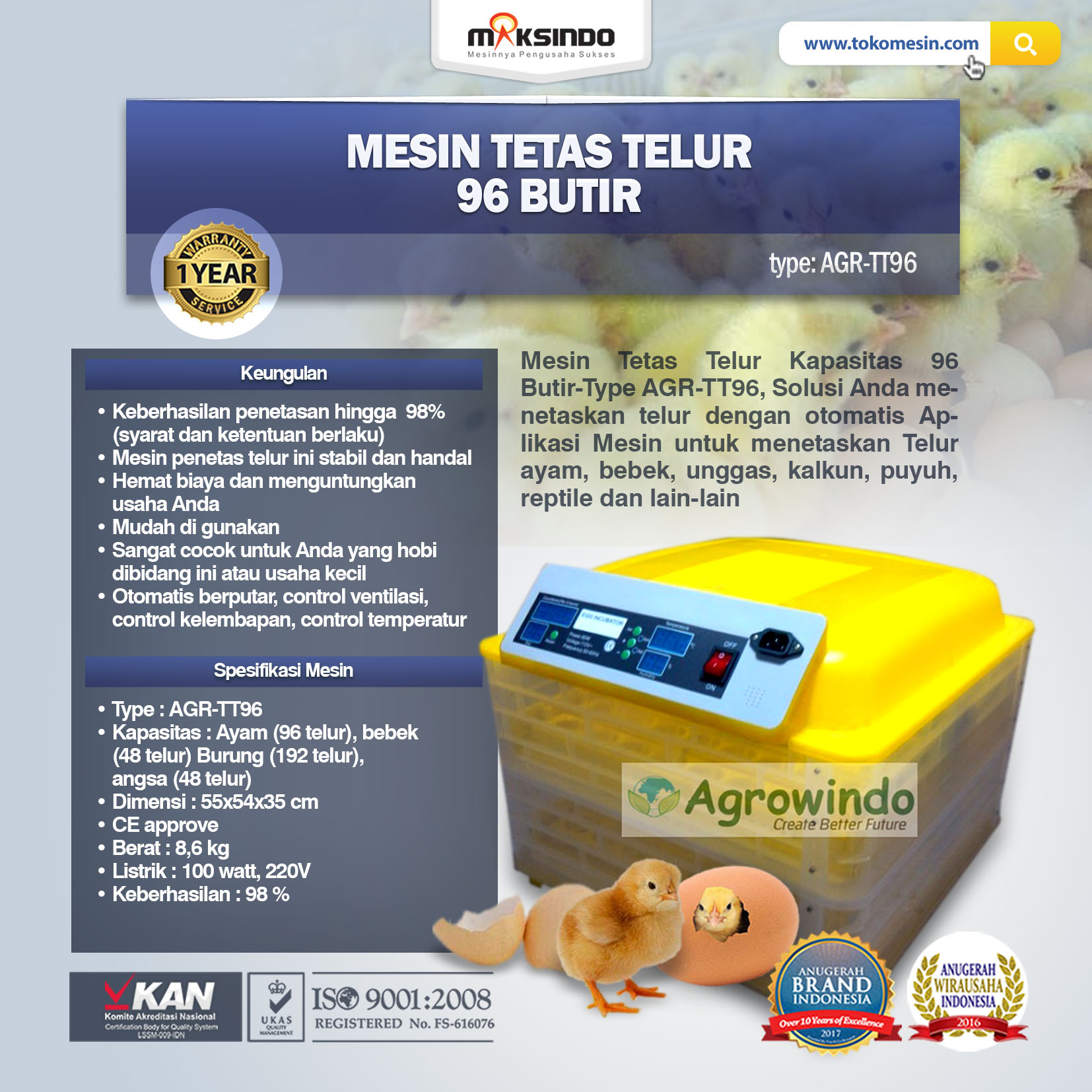 Spesifikasi Mesin Penetas Agrowindo
