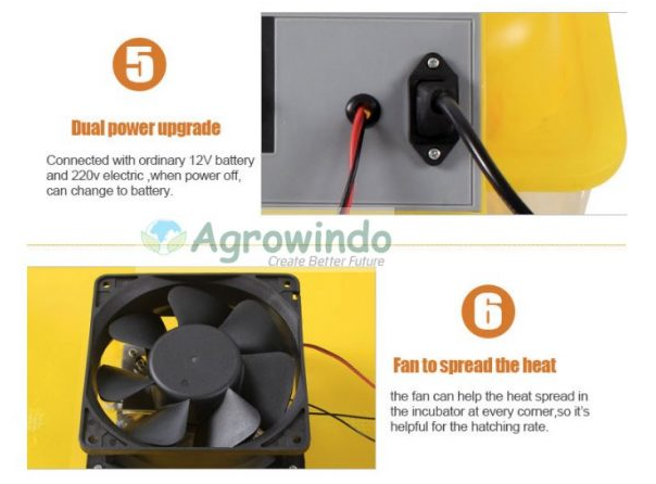 - Otomatis berputar setiap 2 jam (egg incubator Automatic egg-turning (every 2 hours)