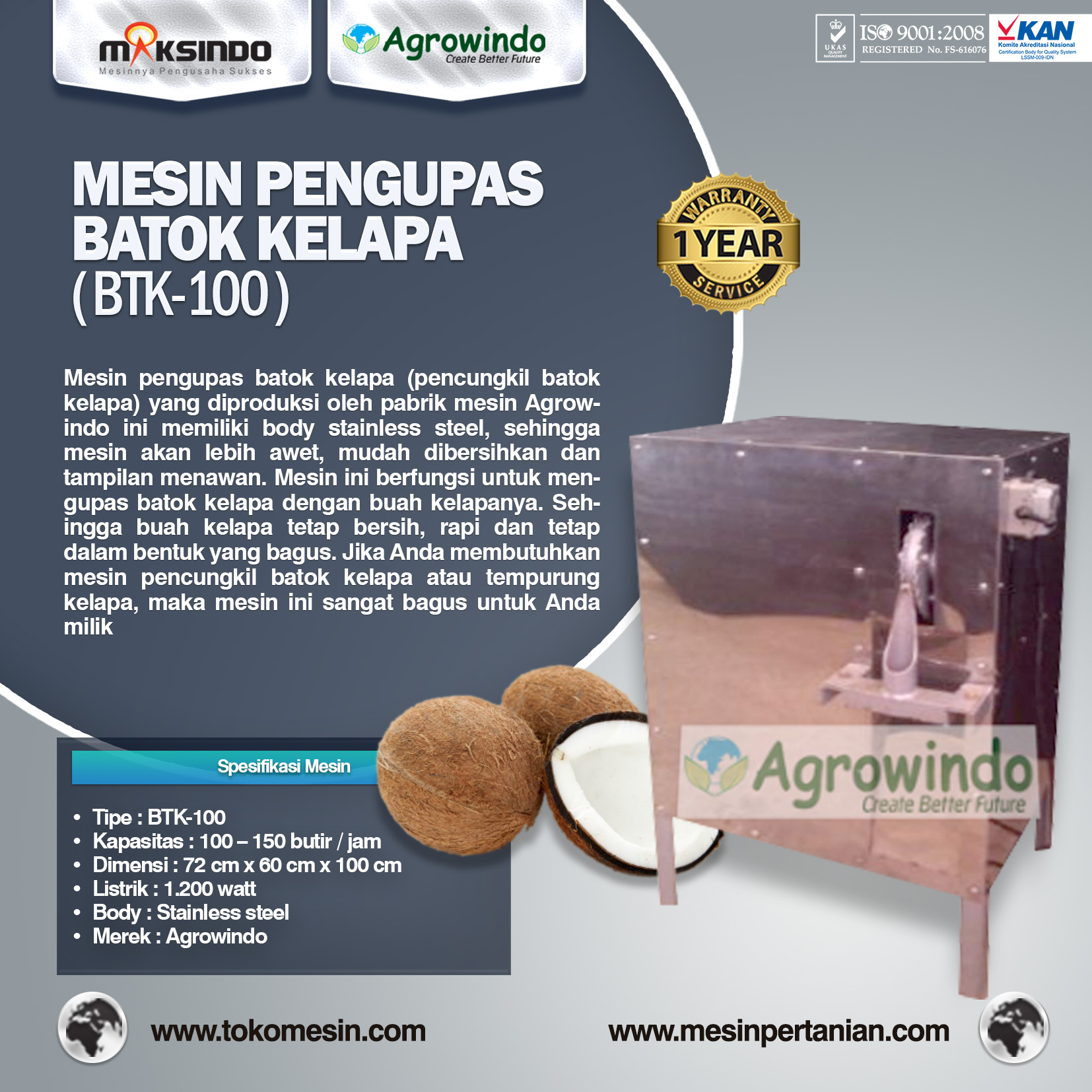Mesin pengupas batok kelapa (pencungkil batok kelapa) yang diproduksi oleh pabrik mesin Agrowindo ini memiliki body stainless steel, sehingga mesin akan lebih awet, mudah dibersihkan dan tampilan menawan
