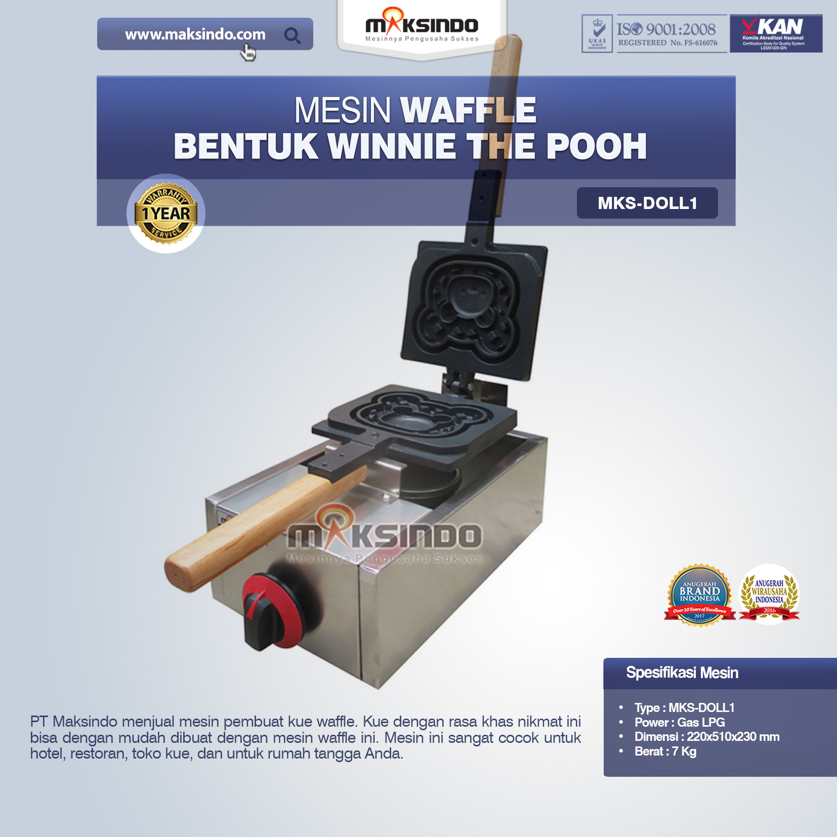 Jual Mesin Waffle Bentuk Winnie The Pooh MKS-DOLL1 di Tangerang