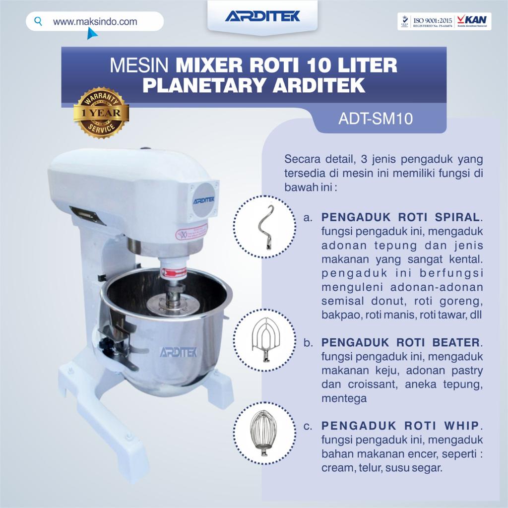 Mesin mikser roti planetary 10 liter ADT-Sm10 ini dilengkapi dengan 3 macam jenis pengaduk dengan 3 kecepatan pengadukan. Sehingga secara umum fungsi dari mesin mixer roti planetary 10 liter ADT-SM10 ini adalah untuk mengaduk adonan roti, baik jenis cair maupun jenis kental. Sehingga dengan memiliki mesin ini, maka Anda sudah bisa membuat aneka jenis roti, baik jenis roti adonan cair semisal roti bolu, maupun roti dengan adonan kental semisal pizza, roti tawar, roti manis, dan sebagainya. Selain untuk mengaduk adonan roti atau kue, mesin ini tentu saja bisa Anda gunakan untuk mengaduk adonan lainnnya, misalnya mengocok telur, mencampur isian, dan sebagainya