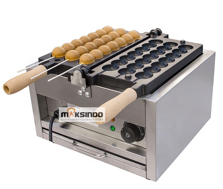Maksindo adalah penyedia mesin wafel yang sangat lengkap. Aneka bentuk waffle telah ada di Maksindo. Dan satu bentuk inovasi mesin wafel terbaru Maksindo adalah bentuk “SATE TELUR”. Bentuk sate telur dari waffle ini terdiri dari 7 bulatan pada setiap tusukan. Konsumen bisa menikmati waffle bentuk sate telur ini dengan berbagai toping yang bisa Anda siapkan, misalnya coklat, susu cair, madu, sirup, dan lain sebagainya. Dengan bentuk yang unik ini, tentu konsumen akan sangat menyukainya