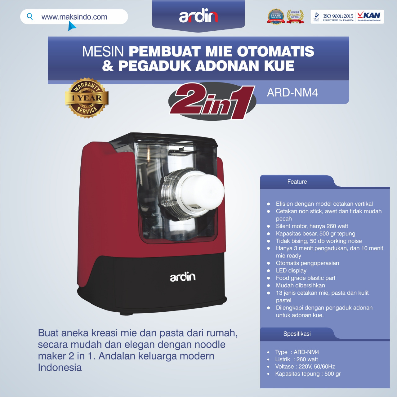 Video Noodle Maker 2in1 Pembuat Mie Otomatis dan Pengaduk Adonan Kue ARD-NM4