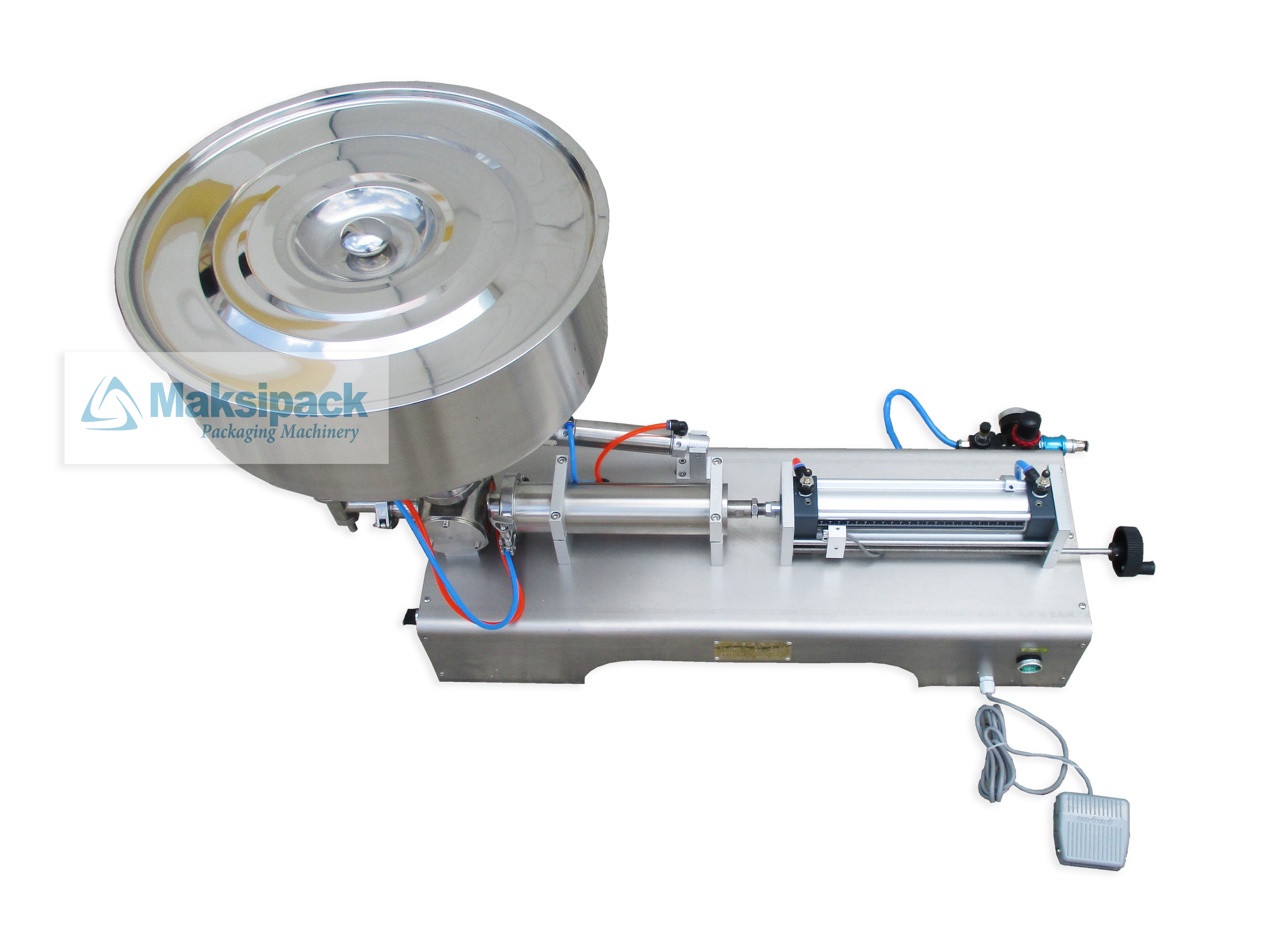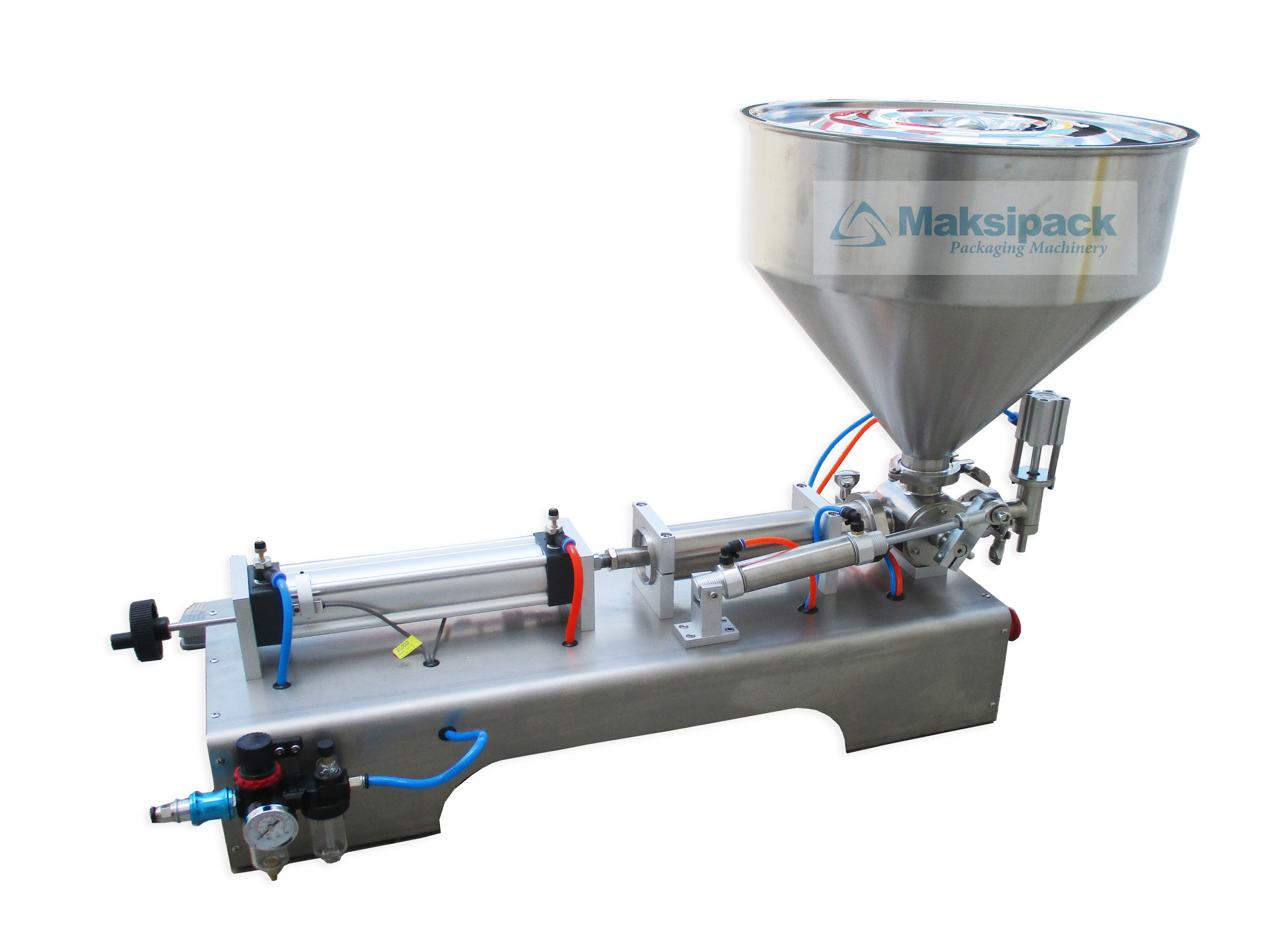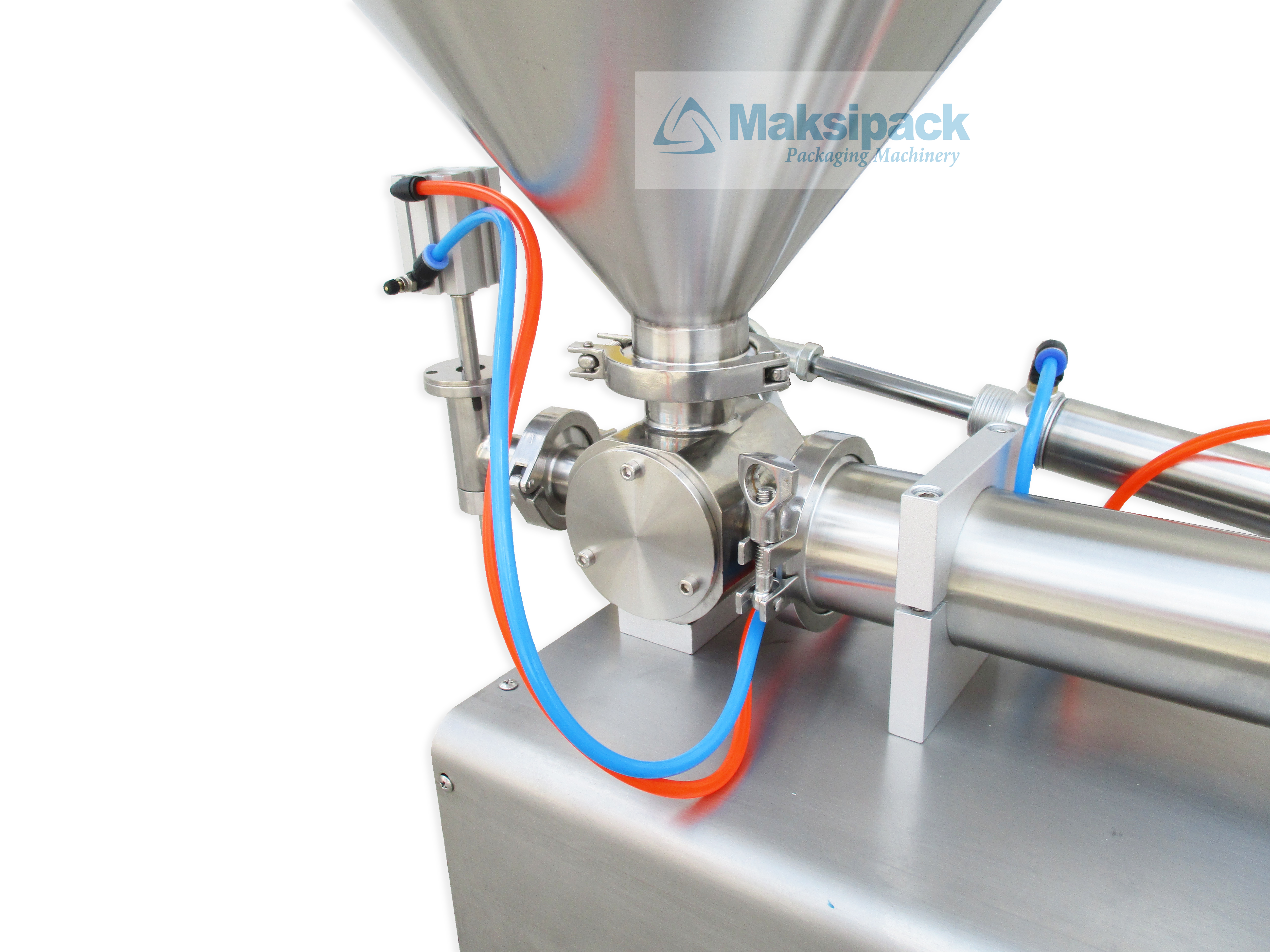 4. Bisa mengisi produk cair dan pasta secara kontinyu dengan ukuran volume dan konstan